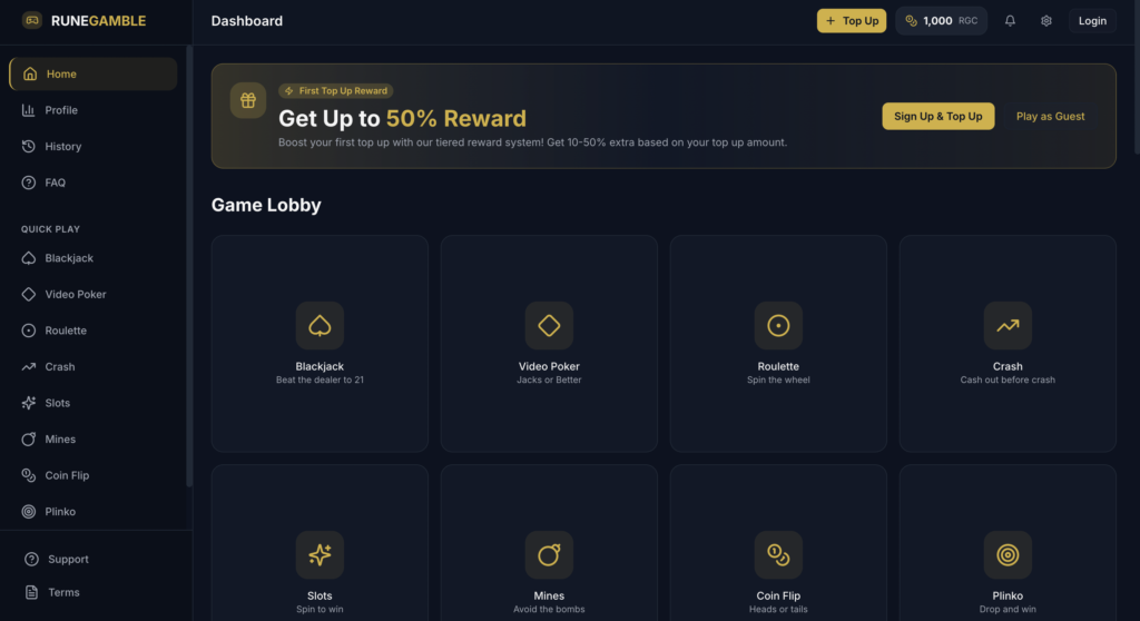The loyalty program at Runegamble.com allows players to accumulate points through regular gameplay. These points can be redeemed for cash bonuses, exclusive promotions, and special VIP treatment, enhancing the overall user experience and rewarding frequent players.